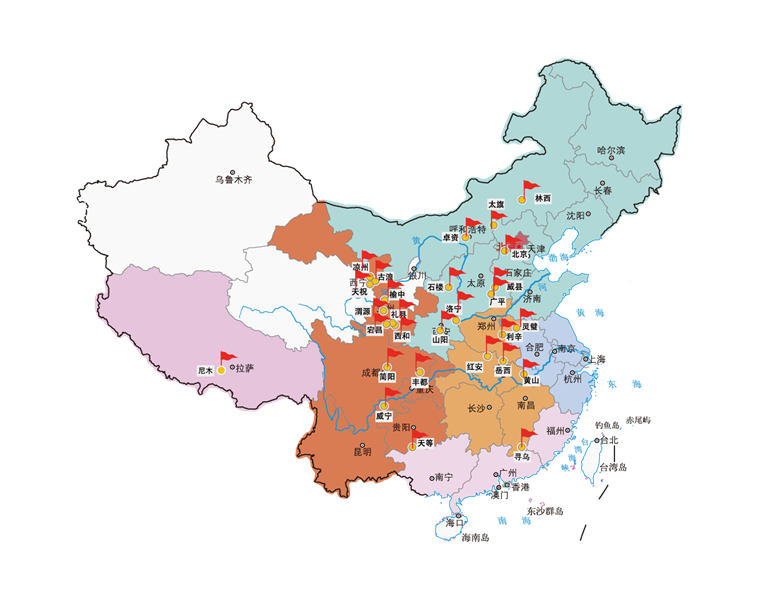 德青源“金雞扶貧”生態(tài)農(nóng)場的全國布局圖